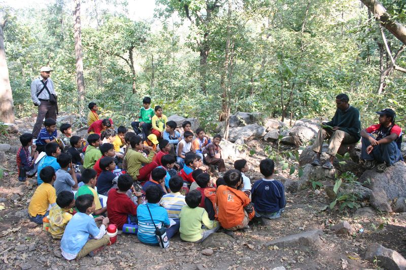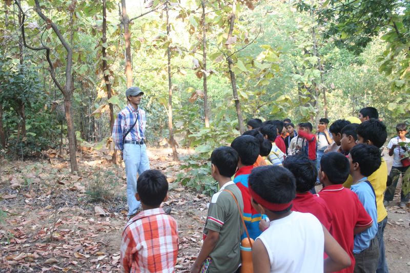 One of the major concepts, Interdependence can be taken up at the outdoor lab in Jambugodha. The surface of the earth has two parts, land and water and it is also surrounded by air. All the living being need land, water and air to survive. Various kinds of plants and animals live on all parts of the earth, some of these live on land and some live in water and many spend most of their life in the air. The necessity of maintaining a balance between the biotic and abiotic components of the environment would be demonstrated through games.